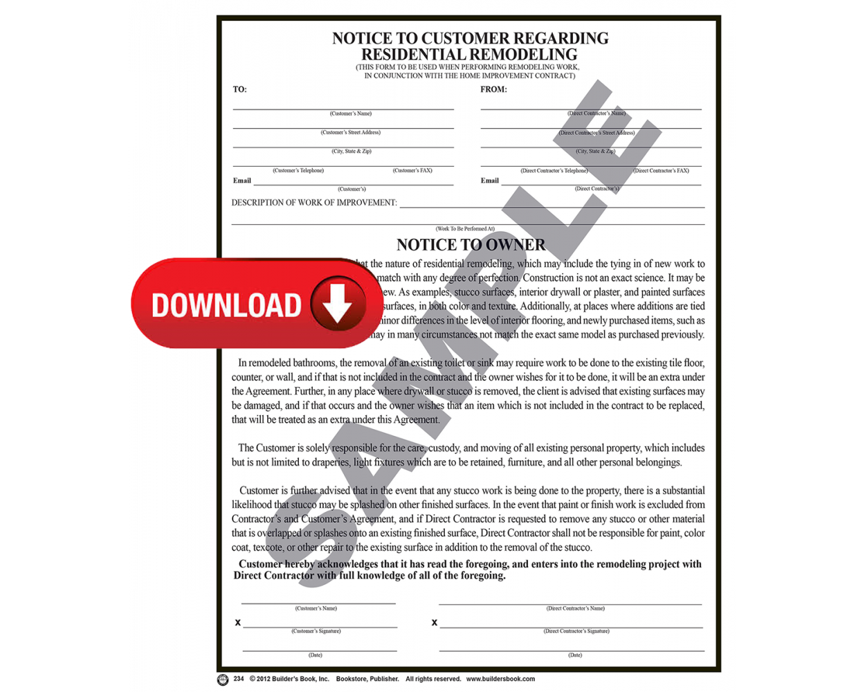 234 - Notice to Owner Regarding Residential Remodeling (Download)