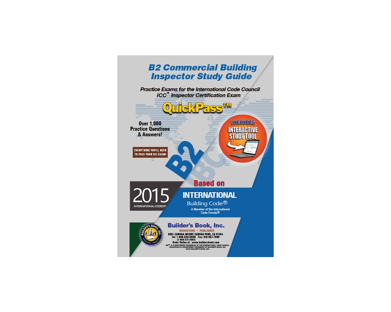 | Description | B2 Commercial Building Inspector Based on 2015 IBC QuickPass Study Tool Book with Online Interactive Software Software is Final Sale and Non-Refundable.