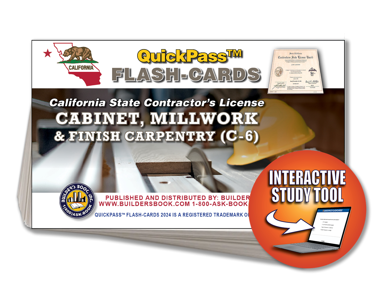 C-6 Cabinet, Millwork and Finish Carpentry Contractor Exam QuickPass Flash Cards Online Access Key