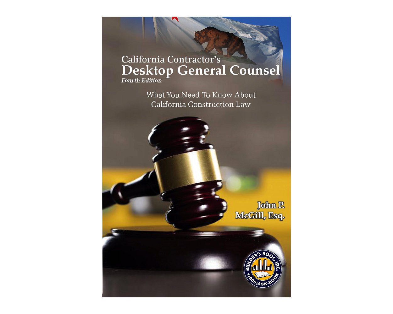For less than the cost of ten minutes of an attorney’s time, you can find the answers to most of the construction law questions you may confront in the construction industry in California. Desktop General Counsel is a comprehensive guide to California construction law written in plain English for contractors. If you ever do need an attorney, you will know what to ask and what the answer means when you hear it. Because this book is a great start to understanding California law in construction, it is used as a textbook in many Community College construction programs.