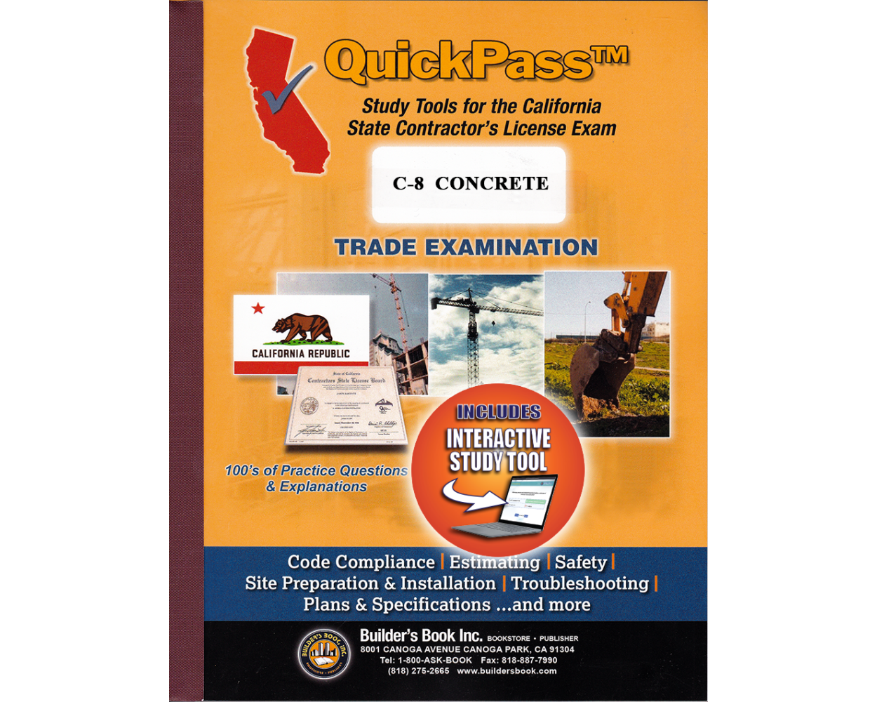 Concrete License Examination (C-8) - QuickPass Study Tool with Interactive Program by Builder's Book.