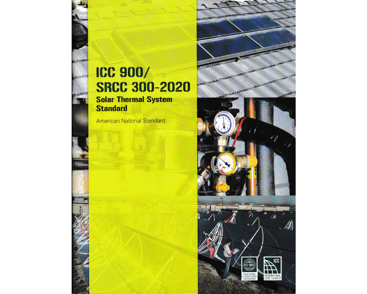 ICC 900/SRCC 300-2015: Solar Thermal System Standard establishes minimum criteria for the design and installation of solar thermal systems. It describes the requirements and methodology for solar thermal system design and evaluation. ICC 900/SRCC 300 is an update to SRCC Standard 300, and is appropriate for use as a successor to that document. The requirements in the ICC 900/SRCC 300-2015 are based on the intent to both update the long-established SRCC 300 standard and improve consistency with the latest model plumbing and mechanical codes in use.
