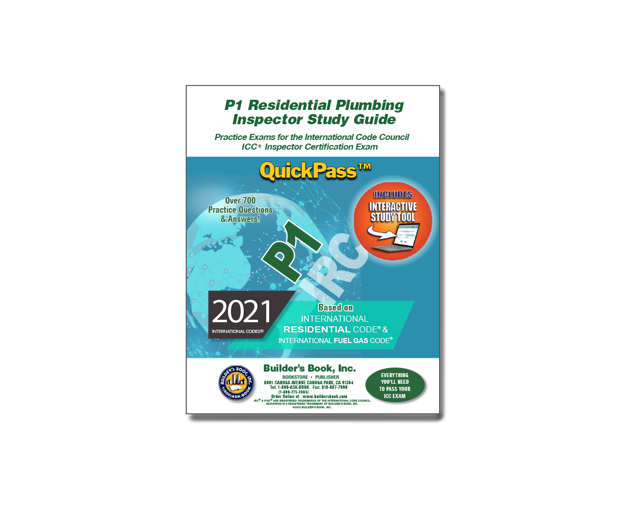 This comprehensive study guide plus interactive program is designed to help students pass the ICC Residential Plumbing Inspector Certification Exam (P1) based on the 2021 ICC International Residential Code. With the QuickPass, you will LEARN what you need to know to PASS the exam! Over 600 unique practice questions! This study guide tests your knowledge with over 800 questions from all areas covered in the ICC P1 Certification Exam. 8 Subject and Code Section specific exams! This study guide divides the exams by ICC, IRC chapters, allowing you to focus on specific sections to fill in your knowledge gaps. Includes referenced code sections! Referenced code numbers and referenced code sections provided below each question allow you to study the IRC code while practicing for the exam.