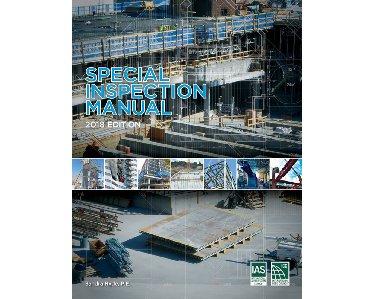The Special Inspection Manual gives detail to oversight and increased inspection requirements. The manual contains the requirements involving special inspection within the International Building Code, descriptions of the required special inspections and information on creating a special inspection program. It supports preparation for special inspection certification exams and aids building departments in their creation of procedures and forms to run a special inspection overview program.
